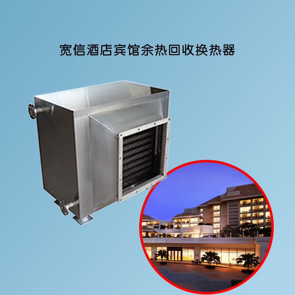 同時,酒店、賓館、酒樓這些場合每天會有大量的洗浴廢水排放、廚房燒菜會產(chǎn)生大量的煙氣排出,洗浴熱水以及廚房煙氣余熱白白流失是一種浪費,可以使用寬信煙氣余熱回收換熱器進行余熱回收。