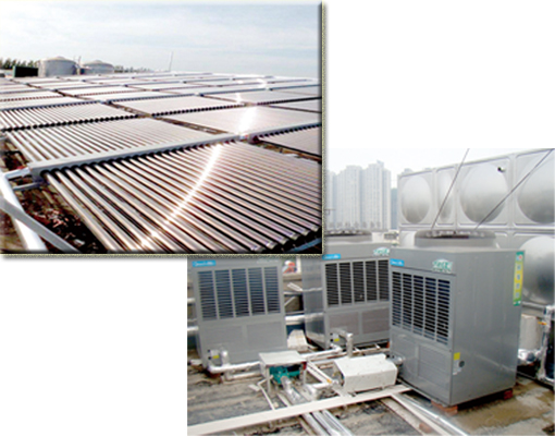 太陽(yáng)能、空氣能采暖和余熱回收可單獨(dú)或組成制備熱水,經(jīng)過(guò)換熱器為用戶客房洗浴、冬季空調(diào)采暖、夏季空調(diào)制冷使用,同時(shí)換熱器可將太陽(yáng)能、空氣能采暖和余熱回收中經(jīng)過(guò)處理的水與自來(lái)水環(huán)路分離開,積垢問(wèn)題腐蝕問(wèn)題可以輕松解決,太陽(yáng)能、空氣能采暖和余熱回收供熱水是世界上應(yīng)用最廣泛的清潔可再生的一種能源。目前廣泛運(yùn)用于住宅、賓館、學(xué)校、機(jī)關(guān)等場(chǎng)所。為滿足熱量不足時(shí)的用熱需求,通常采用燃?xì)忮仩t或電加熱器作為熱水系統(tǒng)的輔助熱源。