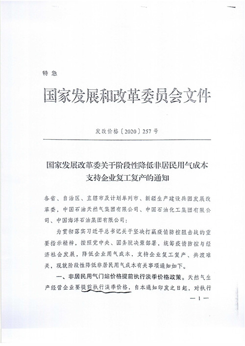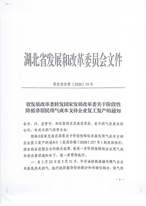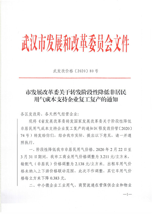 【政策】市發(fā)展改革委關(guān)于轉(zhuǎn)發(fā)階段性降低非居民用氣成本支持企業(yè)復(fù)工復(fù)產(chǎn)的通知(武發(fā)改價格[2020]80號)